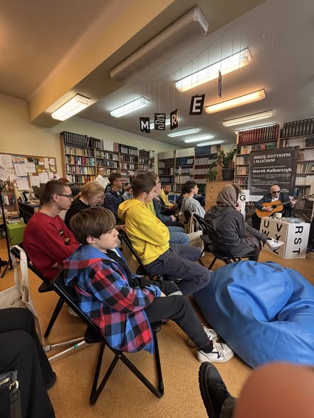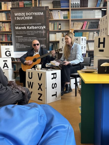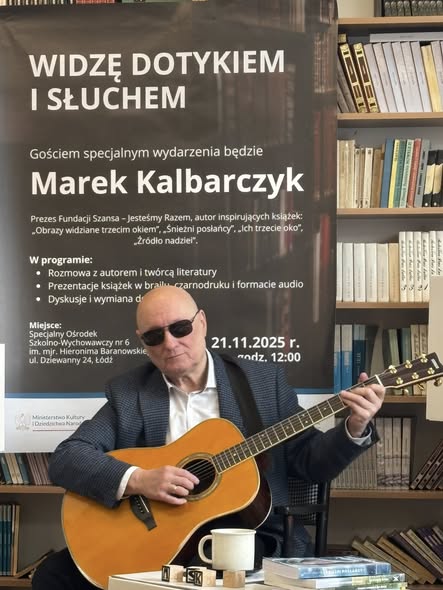 21 listopada w bibliotece naszego Ośrodka odbyło się spotkanie autorskie z Panem Markiem Kalbarczykiem - Prezesem "Fundacji Szansa - Jesteśmy Razem". Spotkanie realizowane było w ramach wydarzenia edukacyjnego "Widzę dotykiem i słuchem – promocja czytelnictwa wśród osób niewidomych".