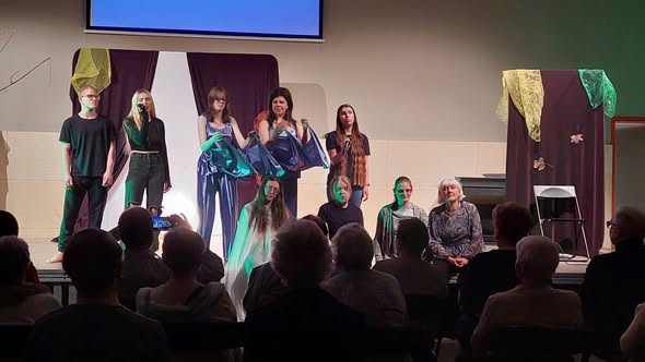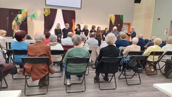 Nasza szkolna dewiza brzmi - KOCHAMY TEATR -TEATR KOCHA NAS, dlatego zagraliśmy spektakl ,,Miłość trzyma się mocno" grupie słuchaczy Uniwersytetu Trzeciego Wieku. Po spektaklu były rozmowy z publicznością o głównym przesłaniu spektaklu - o miłości, która potrafi przezwyciężyć trudności i przeciwności losu. Nasi artyści i goście wykonali wspólnie ćwiczenie choreograficzne. Było to wspaniałe przeżycie dla aktorów i publiczności.