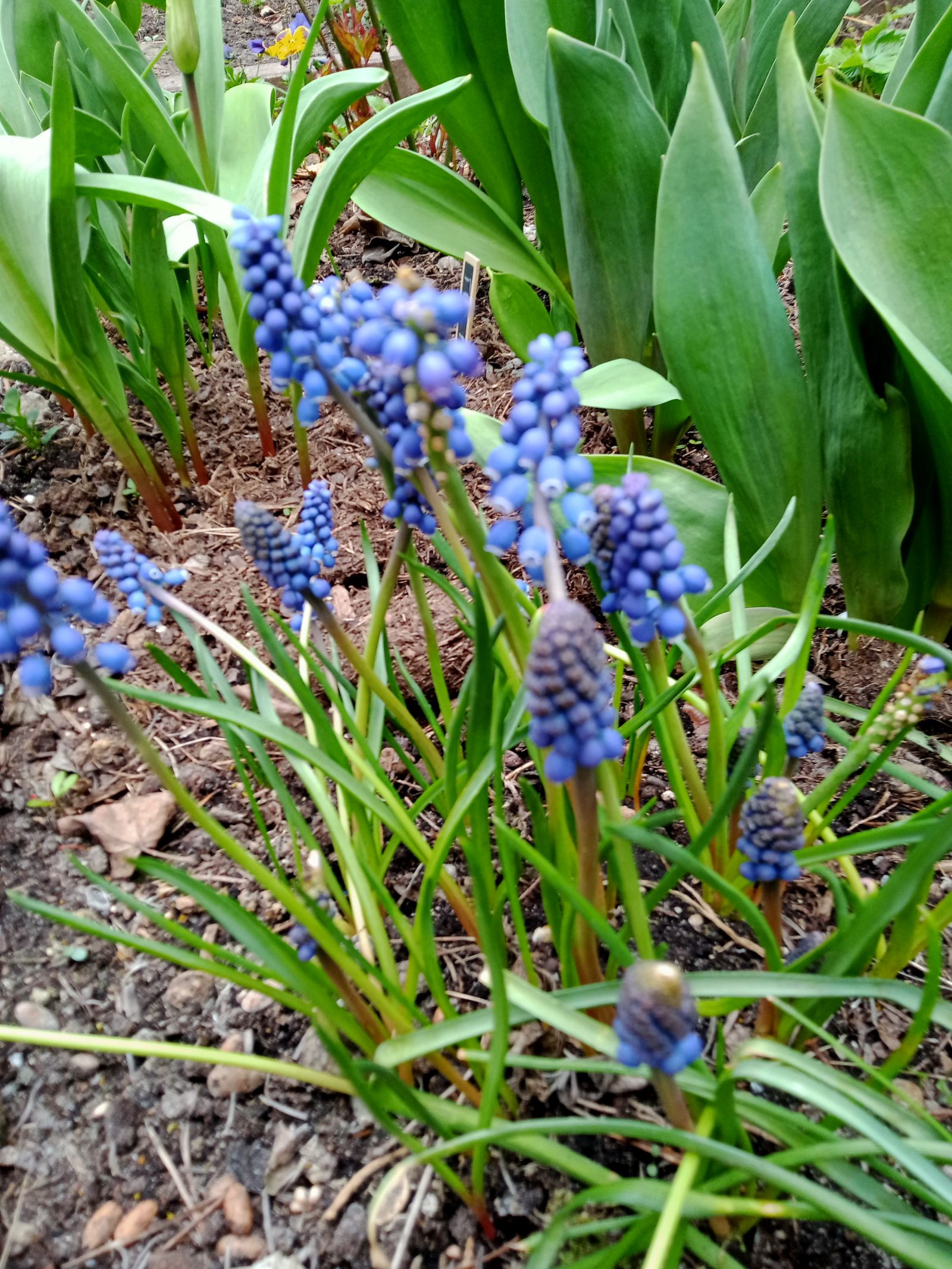 Wiosennie i barwnie zrobiło się też w szkolnym ogrodzie. Kwitną wczesne kwiaty: tulipany, bratki, szafirki, fiołki i hiacynty.